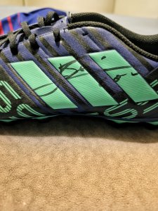 A collector item, a Nemeziz Messi Football Left Boot, hand-signed by Messi himself. A value for Messi fans.