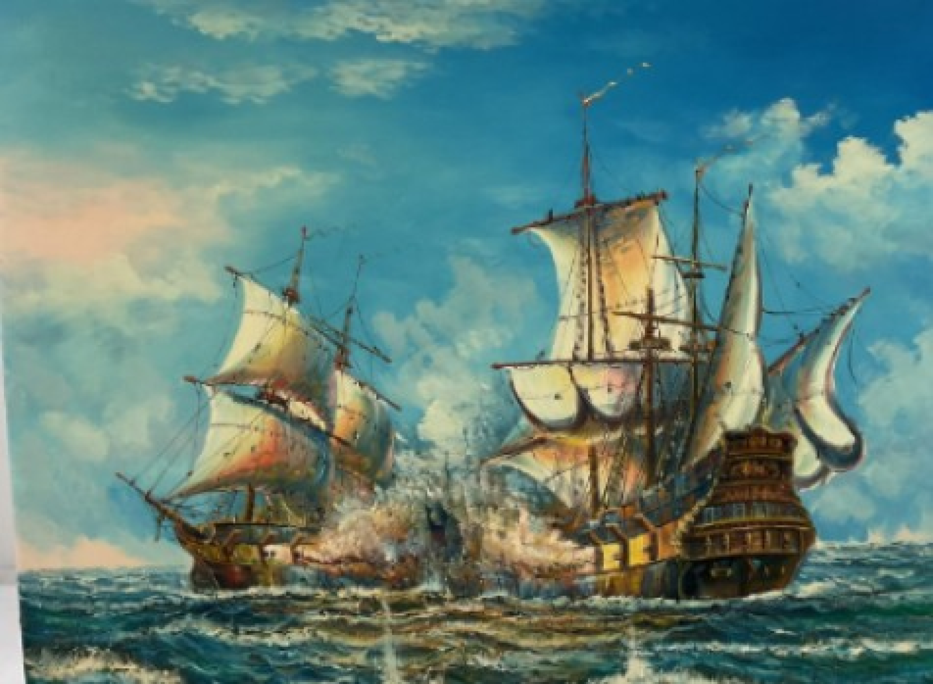 Original Oil on Canvas J Harvey 18th Century ship battle. Signed by Artist